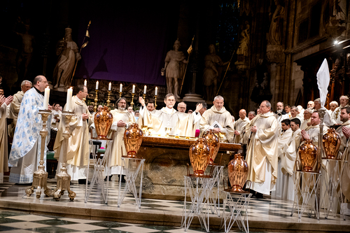 Wiener Erzbischof feierte Chrisammesse im Stephansdom - "Die heiligen Öle wollen uns Gottes Energie schenken, dem Leben Glanz verleihen und Balsam sein für die Seele". Unsere Kamera war dabei.