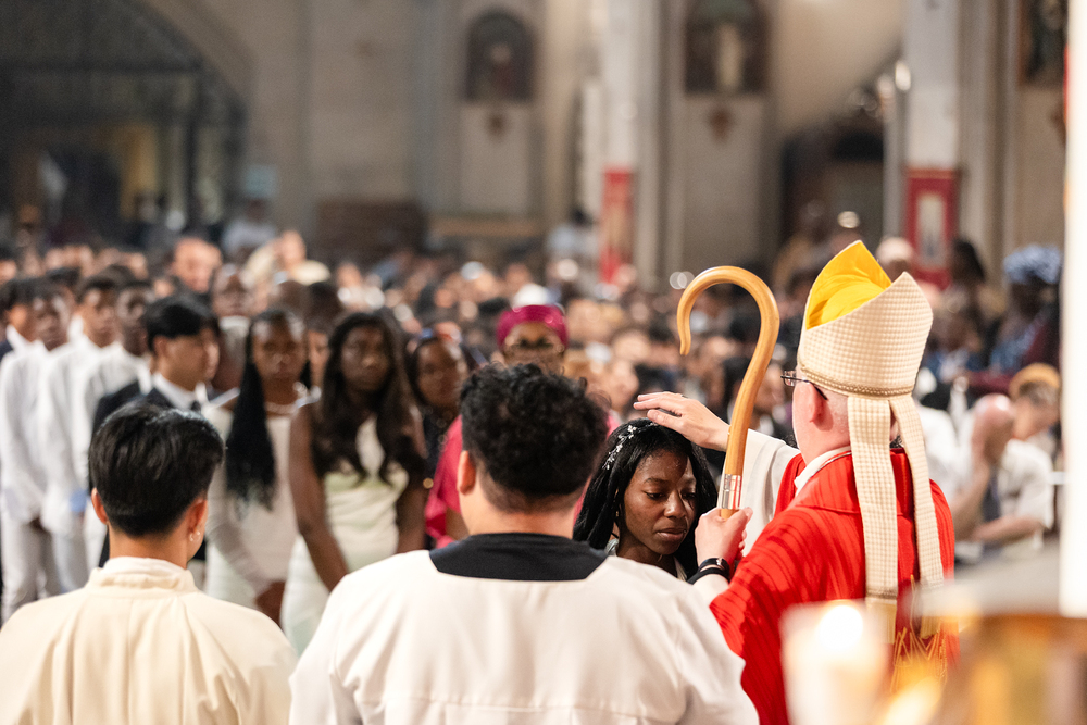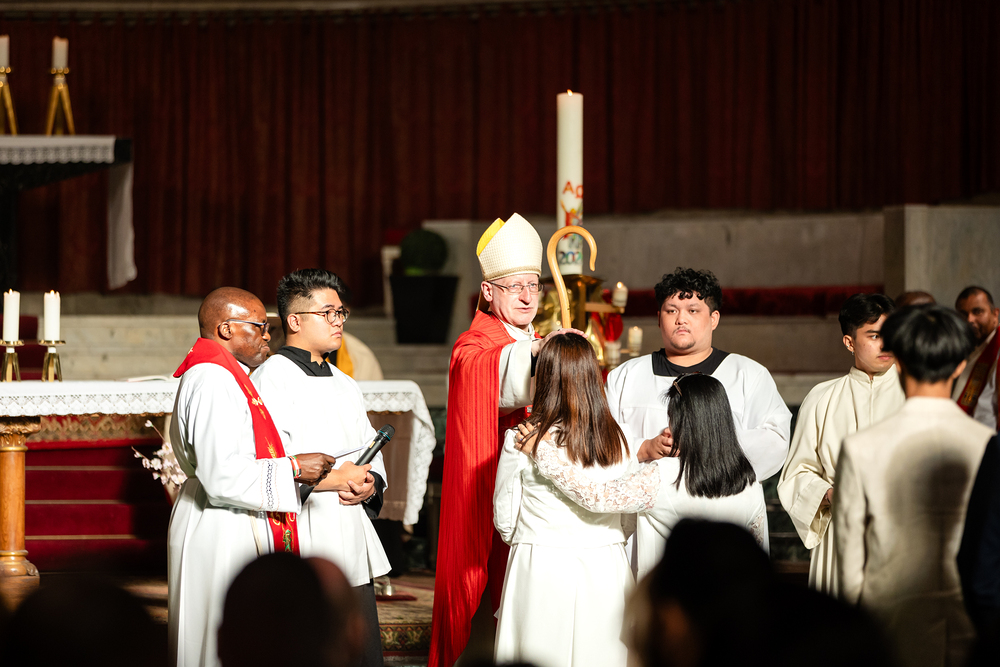 Weihbischof Franz Scharl spendete 61 Mitgliedern der anderssprachigen Gemeinden in der Wiener Canisiuskirche das Sakrament der Firmung.