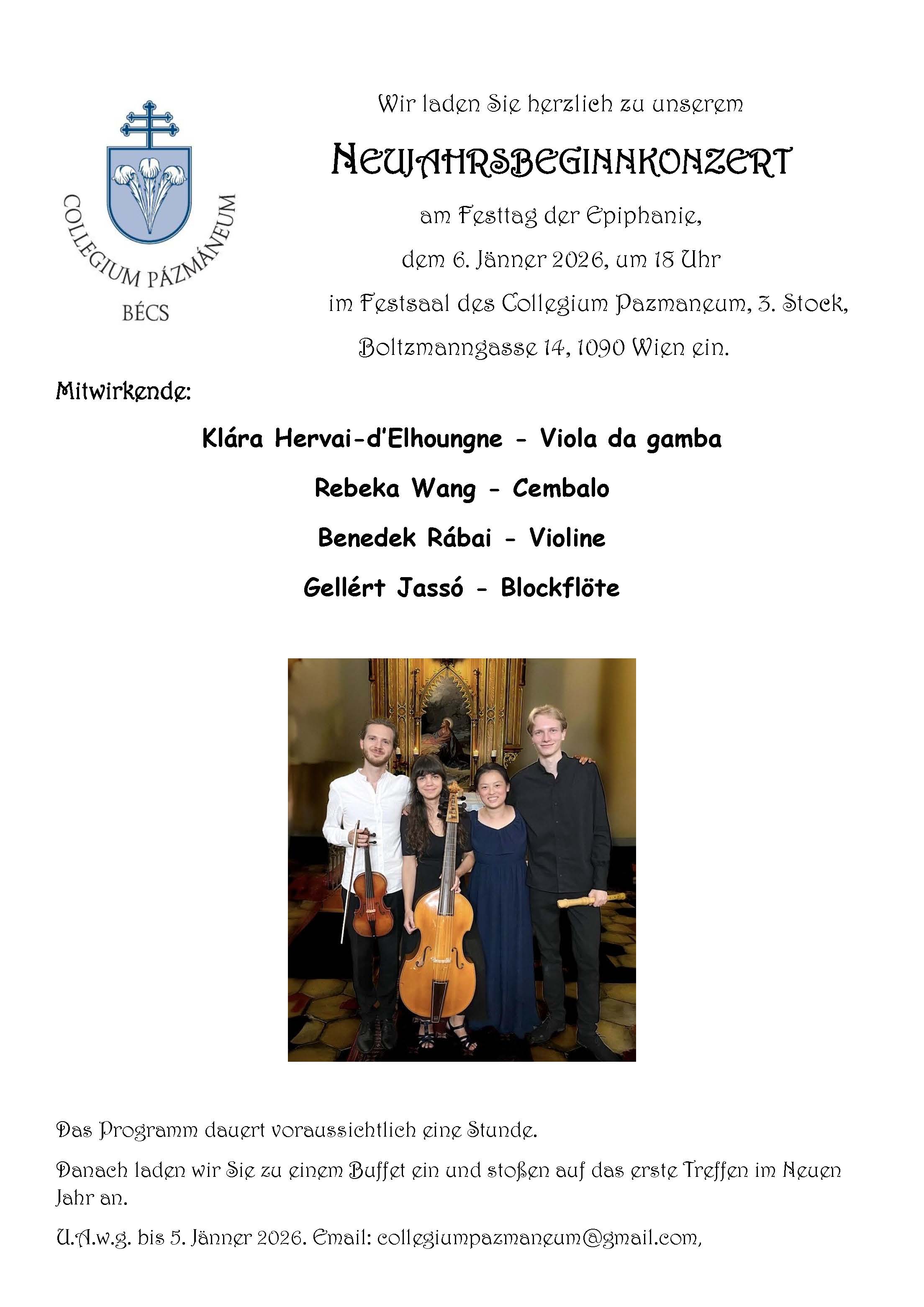 U.A.w.g. bis 5. Jänner 2026. Email: collegiumpazmaneum@gmail.com